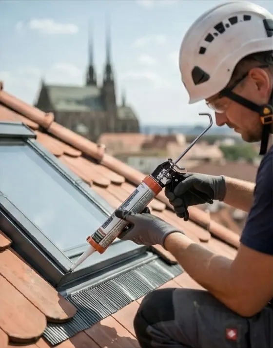 - Drobné opravy střech: Provádíme údržbu střešních prvků, dotěsnění kolem komínů a střešních oken.