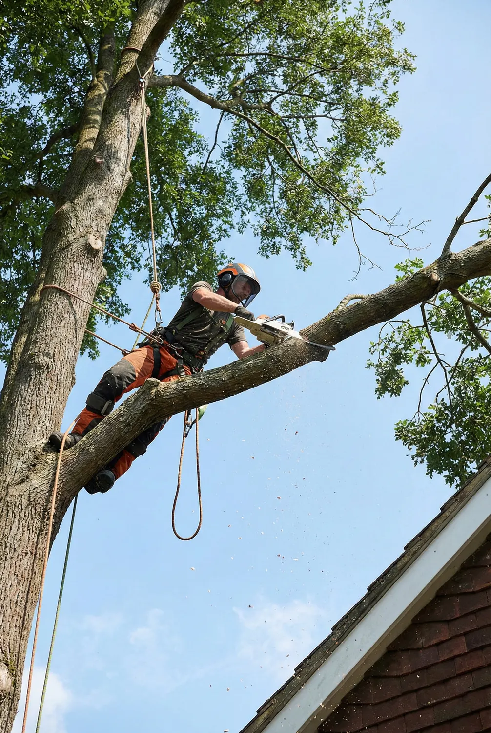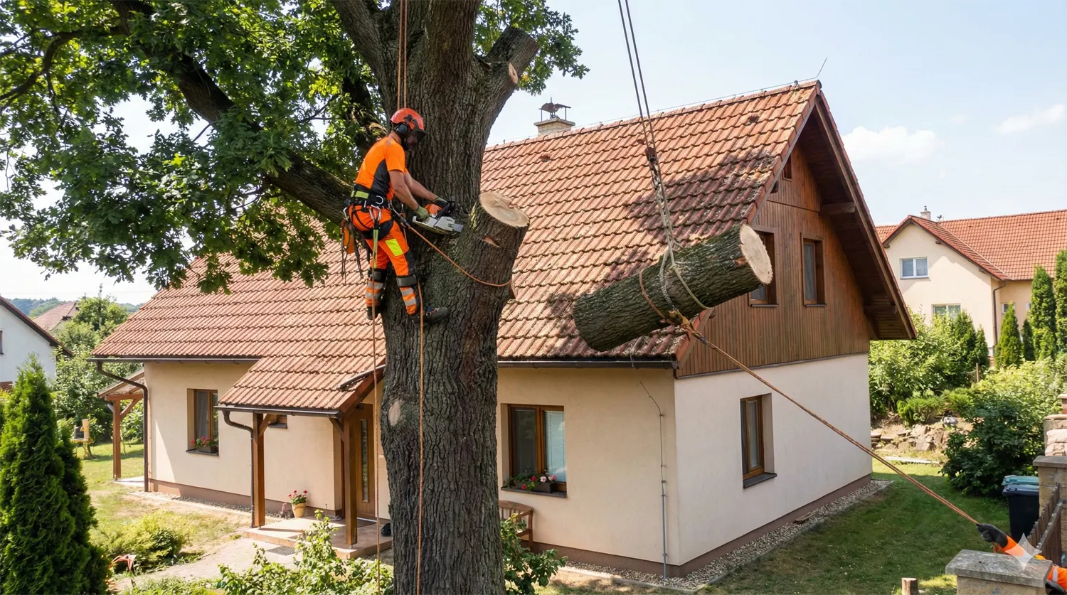 Přerostlý nebo poškozený strom ohrožuje váš majetek? Postaráme se o bezpečné a odborné rizikové kácení i ve velmi ztížených podmínkách.